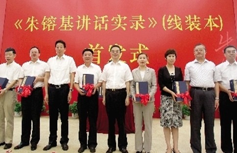 国家图书馆、中国第一历史档案馆、清华大学图书馆、湖南图书馆、长沙县、长沙市一中等单位在首发式上获赠《朱镕基讲话实录》(线装本)。
