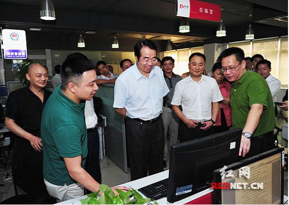 许又声部长(左三)在中南传媒董事龚曙光(左二)陪同下视察红网