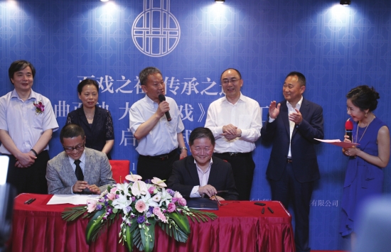 国家新闻出版广电总局副局长邬书林(后排左三)、湖南省委宣传部副部长魏委(后排左二)等领导见证《昆曲百种大师说戏》出版工程启动仪式签约