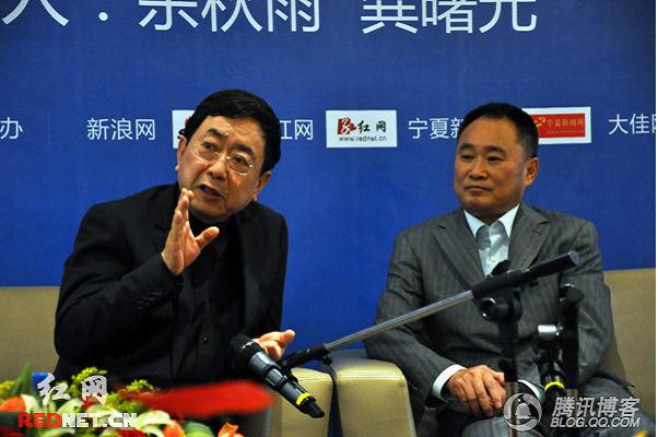 银川书博会期间,龚曙光董事长(右)和余秋雨先生(左)就文明传播者的当代使命进行对话。