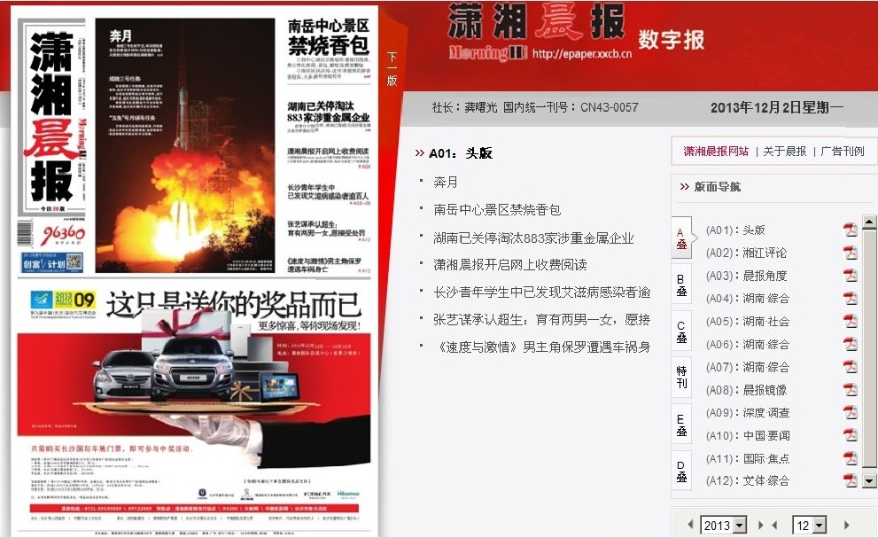 潇湘晨报开启数字报阅读平台_媒体经营资讯_媒体_主营业务_文章_168网官方开奖结果
