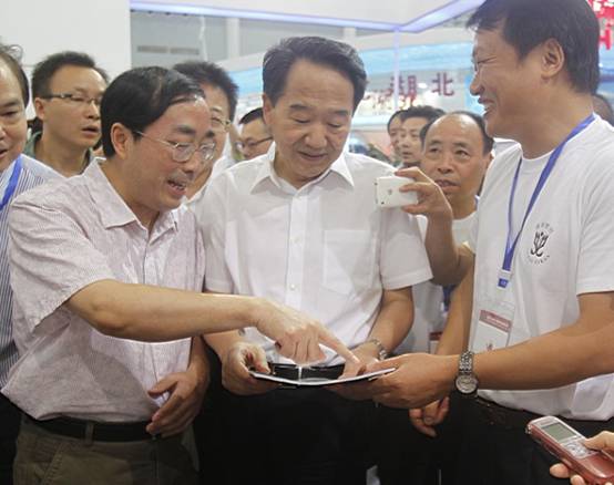 国家新闻出版广电总局党组书记、副局长蒋建国在湖南省新闻出版局党组副书记、副局长禹新荣陪同下视察湖南代表团展馆