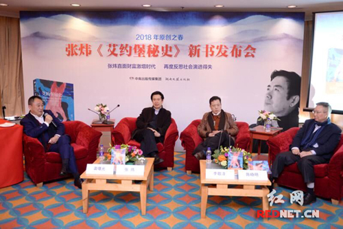 1月12日,张炜小说《艾约堡秘史》在北京隆重发布,龚曙光、张炜、李敬泽、陈晓明(从左至右)相约对谈。