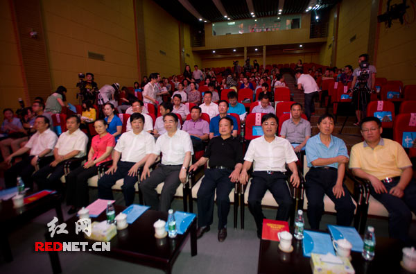 6月27日上午,湖南省委常委、省委宣传部部长许又声[前排左五]等领导参加在红网演播大厅举行的2014年中国(湖南)红色旅游节新闻发布会暨中国湖南红色旅游网启动仪式。