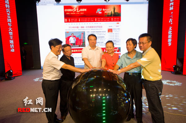 湖南省委常委、省委宣传部部长许又声[左三]等领导启动中国湖南红色旅游网。