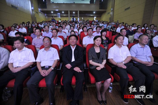 湖南省委副书记孙金龙[左三],省委常委、统战部部长李微微[右三]出席节目直播现场。