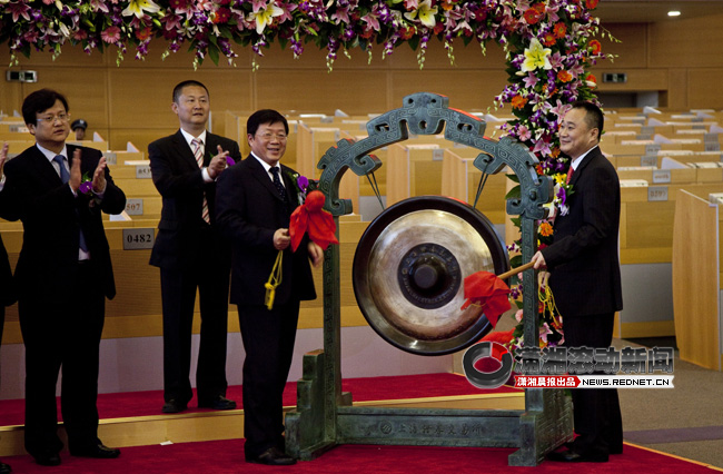 红网上海10月29日讯(潇湘晨报记者 张冬萍)在这个充满创意、梦想和机遇的舞台上,已经很久没有出现过龙头的身影,一切静默只为期待中南传媒的到来。10月28日,在国家新闻出版总署副署长邬书林等领导的见证下,湖南省委常委、宣传部长路建平与中南传媒董事长龚曙光一道鸣锣开市,代码为“601098”的中南传媒正式登陆上海证券交易所,挂牌首日涨30%,股票市值达到248亿元,一跃成为出版传媒板块资产规模最大、股票市值最高的新龙头。